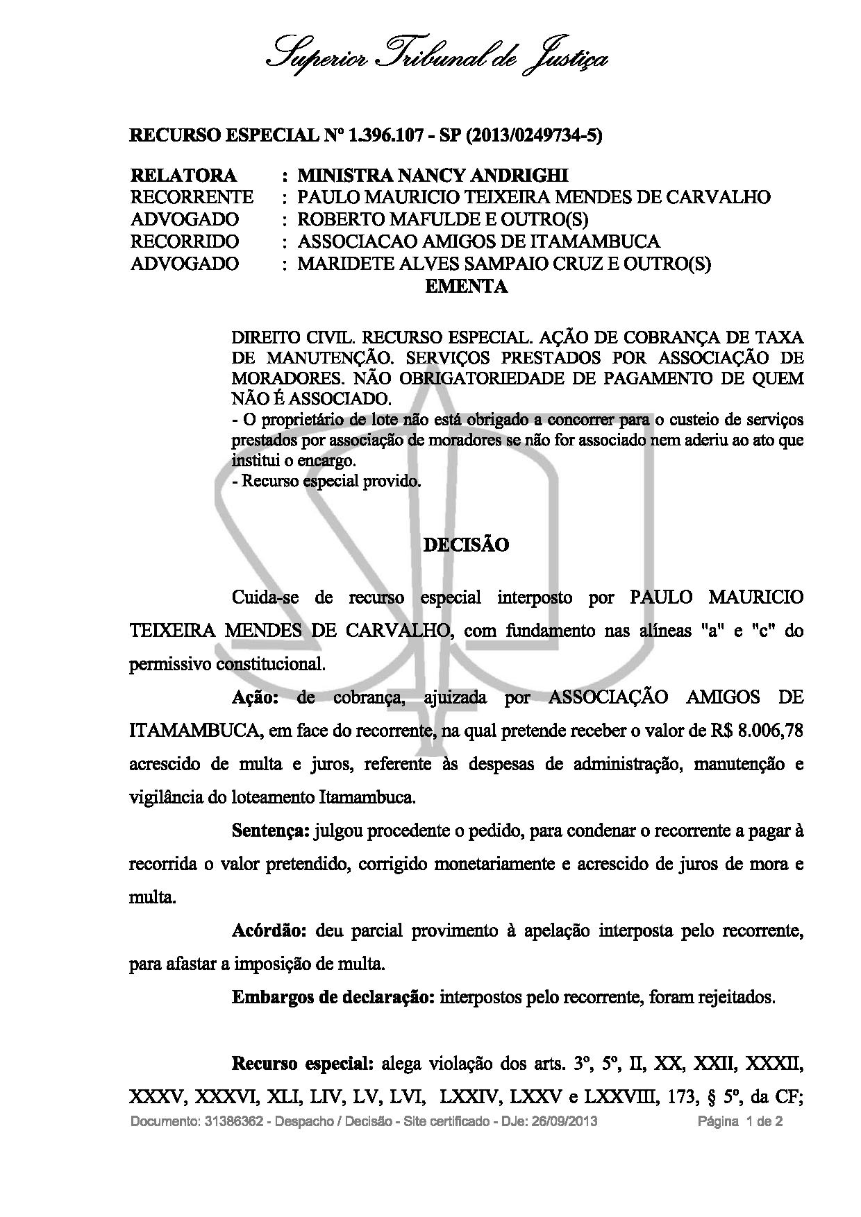 Como é de conhecimento, conseguimos a maioria das jurisprudências contra os falsos condomínios perante a corte maior que é o STJ, mas parece que alguns juízes não dão bola para o entendimento superior, inclusive, nem para o que já decidiu o STF.