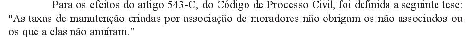 Necessário esclarecer que a nossa equipe jurídica, conseguiu a maioria das jurisprudências existentes no STJ, na questão dos falsos condomínios. O entendimento é assentado ou seja a jurisprudência é unanime, diferentemente do que alguns juízes alegam, não existe uma única jurisprudência valida para as associações, todas são favoráveis aos moradores.