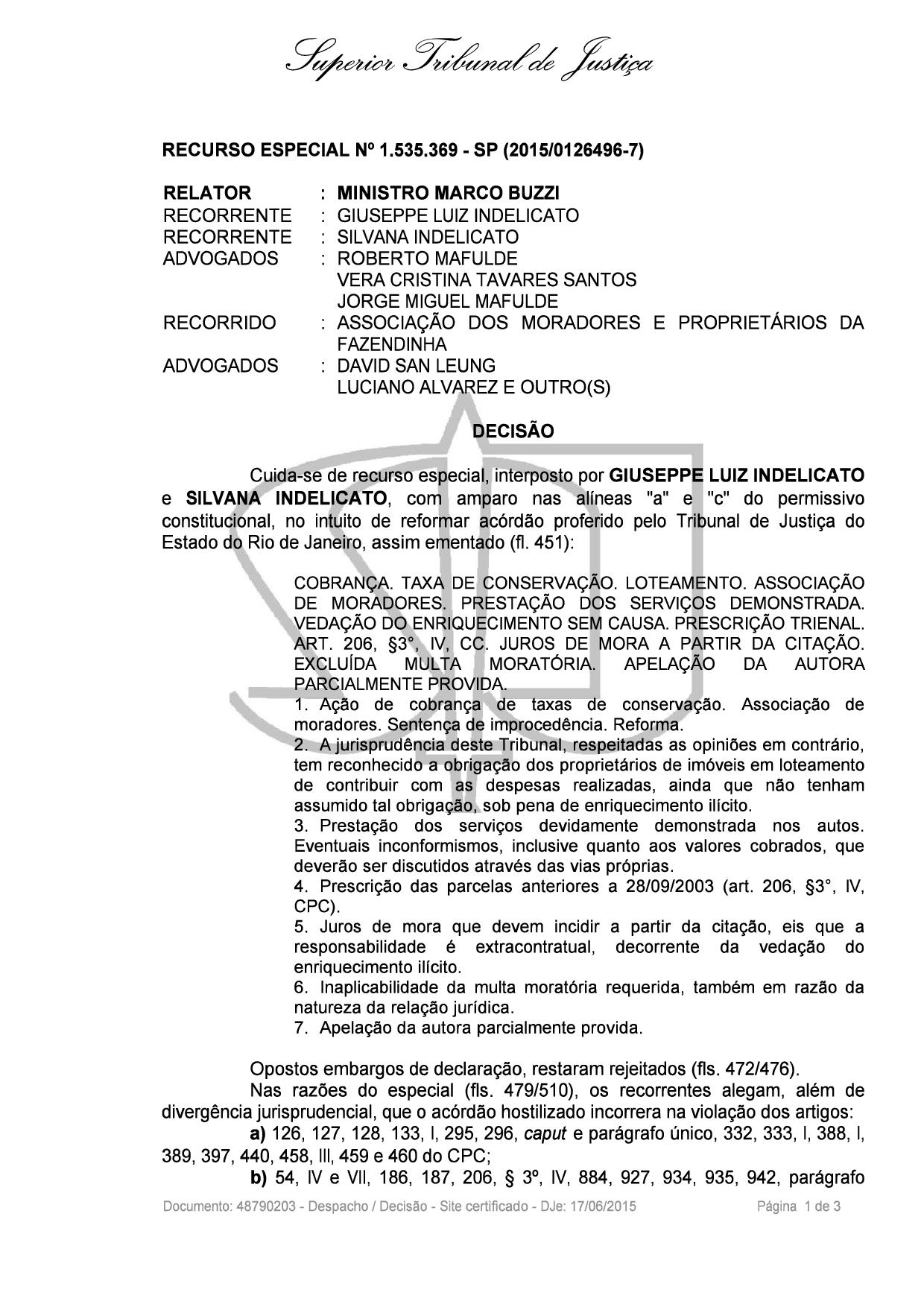 A seguir a reforma da decisão em mais esta vitória contra a associação que estava acostumada a fazer fortunas com a venda em face da penhora dos imóveis dos moradores que não concordavam em se submeter à esta fraude. Assim intimidando os moradores que ganhava todas as ações na Justiça. Mas o STJ graças à combatividade de nossa equipe jurídica, culminou mais uma vez, por reformar a decisão do TJSP, acatando integralmente os estudos de nosso Diretor Jurídico.