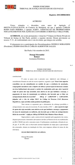 Mais uma Grande Conquista remetendo e reorganizando o pensamento de muitos magistrados que QUIÇÁ por engano condenavam os moradores aos pagamento de taxas de associação de forma compulsória. Esperamos assim que agora devidamente esclarecida a questão, que o poder judiciário como um todo, deva submeter-se ao entendimento firmado pelo Superior Tribunal de Justiça, acabando com a desordem e procedendo com a verdadeira obrigação e finalidade de um magistrado, que é aplicar o que manda a Lei, seguir o que manda o código de processo civil e não legislar.