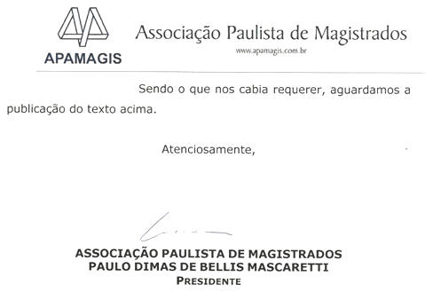 DIREITO DE RESPOSTA CONCEDIDO PARA ASSOCIAÇÃO PAULISTA DE MAGISTRADOS APAMAGIS