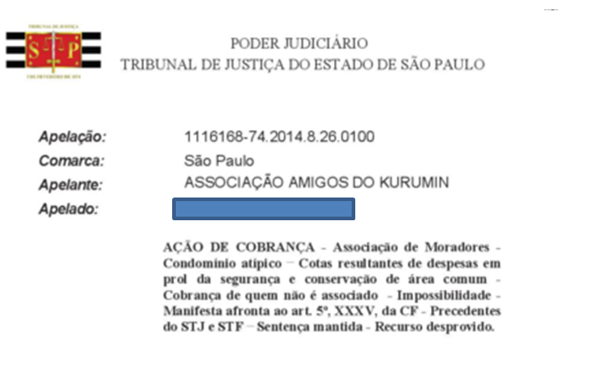 Assim, manifestei-me junto ao processo a seguir no TJSP onde uma associação foi condenada pela quarta "4ª" vez demonstrando que esse expediente é ilegal, inconstitucional, imoral e beira a criminalidade provando assim que não há como justificar uma decisão condenatória, com base em blá, blá, blá.