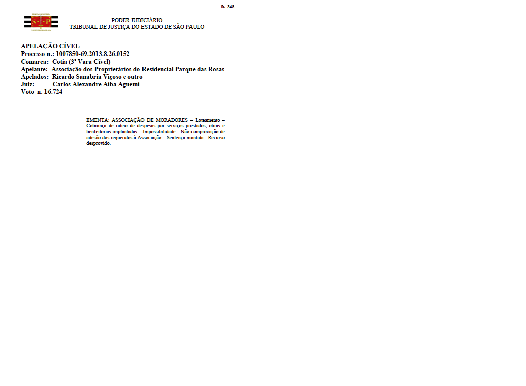 É com muita satisfação que estamos presenciando mais um julgamento de uma ação inconstitucional e absolutamente indevida promovida por um "falso condomínio" que se julga o dono das áreas publicas em COTIA, mas que vem constrangendo os moradores com a cobrança judicial de taxas ilegais direcionadas à quem nada contratou em termos jurídicos desde 2013.