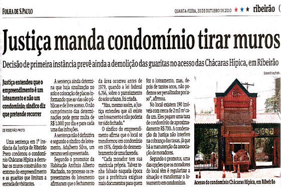 Nota do Editor: O Ex-prefeito de Vinhedo e Secretários, receberam voz de prisão "fonte anônima" (valinhos) e multa de R$ 5,5 milhões por formação de quadrilha, pois, transformavam loteamentos em “residenciais” e “condomínios atípicos”.